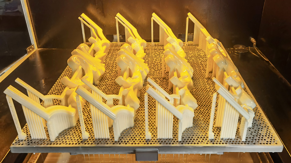 在工業(yè)級SLA3D打印機的成型過程中,先將3D模型進行切片處理,然后通過光源對光敏樹脂進行局部固化,實現(xiàn)零件的逐層堆疊。光敏樹脂的配方和光源的選擇會影響成型質(zhì)量,因此需要針對不同的應(yīng)用領(lǐng)域進行優(yōu)化。此外,工業(yè)級SLA 3D打印機通常具有較大的建模區(qū)域和高速成型的能力,同時需要配合高效的后處理設(shè)備,如清洗機、UV烘箱等,來保證成型品質(zhì)和生產(chǎn)效率。